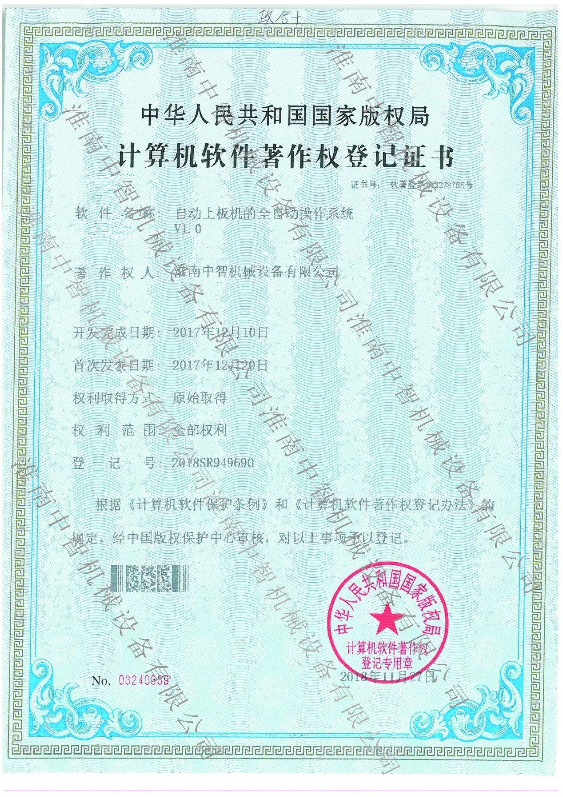 淮南开云体育-足球篮球官方直播平台机械自动上板机全自动操作系统专利证书