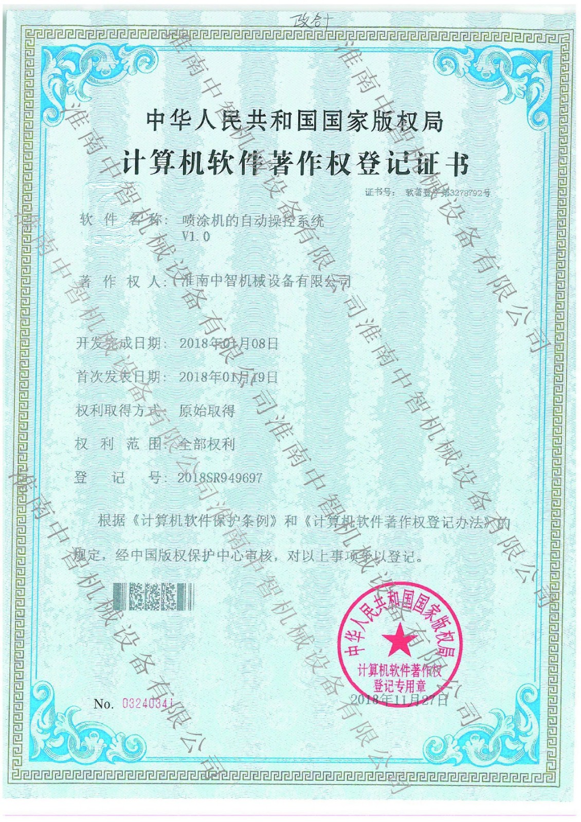 淮南开云体育-足球篮球官方直播平台机械喷涂机的自动操控系统专利证书